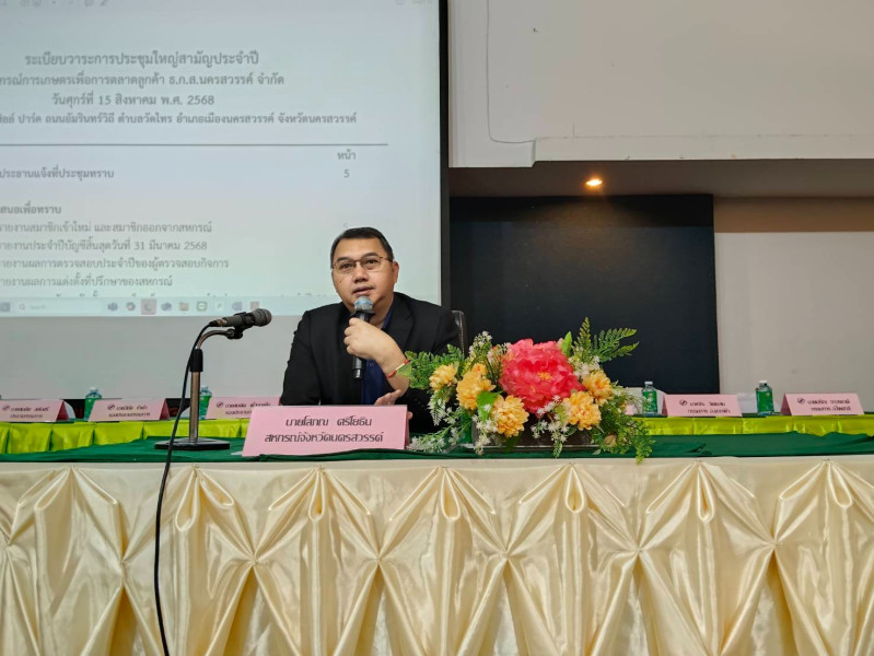วันที่ 15 สิงหาคม 2568 นายโสภณ ศรีโยธิน สหกรณ์จังหวัดนครสวรรค์ พร้อมด้วยนายพิษณุ รักษากลิ่น ผู้อำนวยการกลุ่มส่งเสริมสหกรณ์ 1 และบุคลากรกลุ่มส่งเสริมสหกรณ์ 1 เข้าร่วมประชุมใหญ่สามัญประจำปีสหกรณ์การเกษตรเพื่อการตลาดลูกค้า ธ.ก.ส.นครสวรรค์ จำกัด สำหรับปีบัญชีสิ้นสุดวันที่ 31 มีนาคม 2568 ณ ห้องประชุมเพ็ชรงอก แกรนด์บอลรูม โรงแรมเบเวอร์ลี่ ฮิลล์ ปาร์ค นครสวรรค์ ตำบลวัดไทร อำเภอเมือง โดยสหกรณ์มีทุนดำเนินงาน 699,997,466.22 บาท ผลการดำเนินงานมีกำไรสุทธิ 1,019,149.18 บาท ทั้งนี้ ได้กล่าวชมเชยการดำเนินงานของสหกรณ์ การแก้ไขเพิ่มเติมข้อบังคับให้สอดคล้องตามกฎกระทรวง การกำหนดลักษณะ วัตถุประสงค์ และขอบเขตแห่งการดำเนินกิจการของสหกรณ์ พ.ศ.2567 รวมทั้งการให้ความสำคัญเกี่ยวกับสิทธิและหน้าที่ของสมาชิกต่อที่ประชุมใหญ่